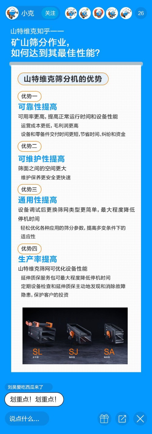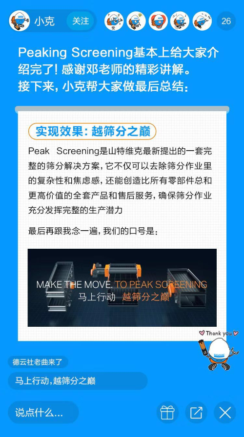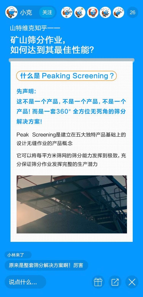 今天的直播課就請他,為大家講講礦山開采中一個重要環節——篩分。要知道篩分性能不佳會給開采商帶來不可預估的損失,比如成本的增加、利潤的下降,那你知道如何解決礦山篩分作業中的痛點,從而實現產能最大化么?今天我們就以山特維克Peaking Screening篩分解決方案為例,看看如何做到「越篩分之顛」!