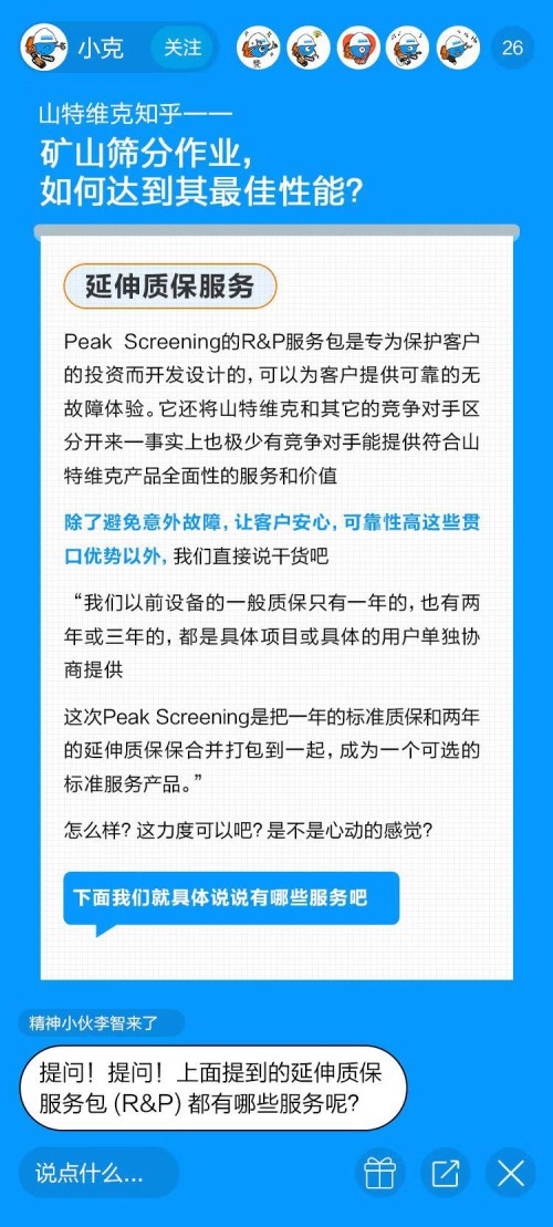 Peaking Screening其實就是為礦山篩分作業購買了一份了雙重的保險。除了可以為客戶提供高性能高質量的產品,還有一套全面周到的售后服務保障,保障礦山篩分作業最佳的工作狀態的同時,大大降低了總體成本,為給客戶帶來了更高的產品價值。